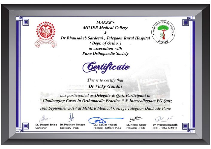 An orthopaedic surgeon who persues degrees MBBS ( M.S. University, Baroda ), Diploma in orthopaedics ( Kottayam, Kerala ) & DNB orthopaedic from P.D. Hinduja hospital, Mumbai . He has done fellowship in arthroscopy surgery & knee joint preservation surgery from BG klinik, Tübingen, Germany.